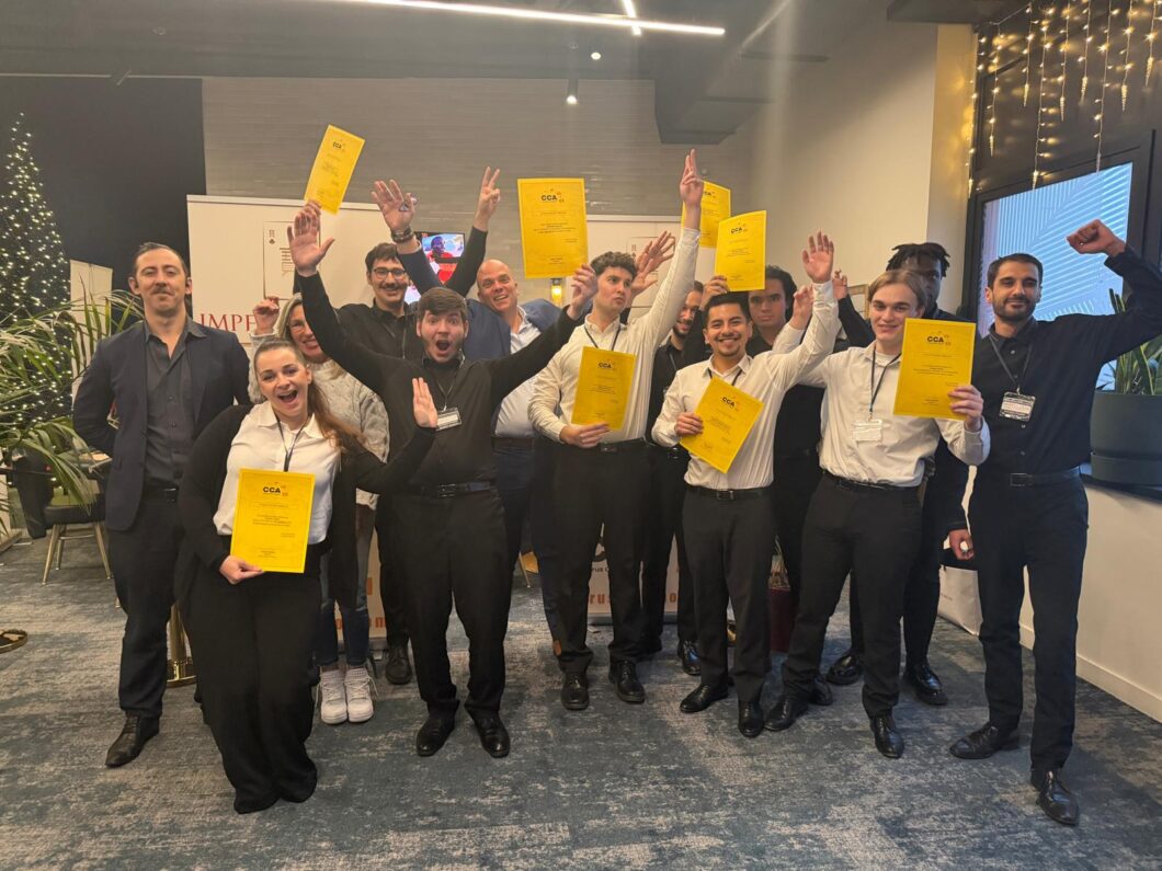 Fin de formation à l’Impérial Club ! in Toutes les actualités on 23/12/2025 05/01/2026 Partager Facebook Twitter Pinterest Email 0 Like this Bravo à tous les diplômés qui rejoindront dans quelques jours les équipes en salle des jeux. Un immense merci à l’Impérial Club Paris !Merci à l’équipe de France Travail et de l’Afdas pour leur accompagnement.Nous souhaitons une belle carrière à nos élèves. Partager cet article Article précédent← Fin de session au Casino Barrière de Lille ! Fin de session au Casino Barrière de Lille ! Article suivantCERUS CASINO ACADEMY, ce n’est pas seulement une école : c’est un partenaire pour les casinos et clubs de jeux. → CERUS CASINO ACADEMY, ce n’est pas seulement une école : c’est un partenaire pour les casinos et clubs de jeux. Vous aimerez peut être aussi MARSEILLE Toutes les actualités Chef Yannick, formateur à Marseille. Voir l'article Toutes les actualités Première simulation au Black-Jack… Voir l'article Toutes les actualités Replay live de l'école de croupiers à Namur 14/02/17 Voir l'article